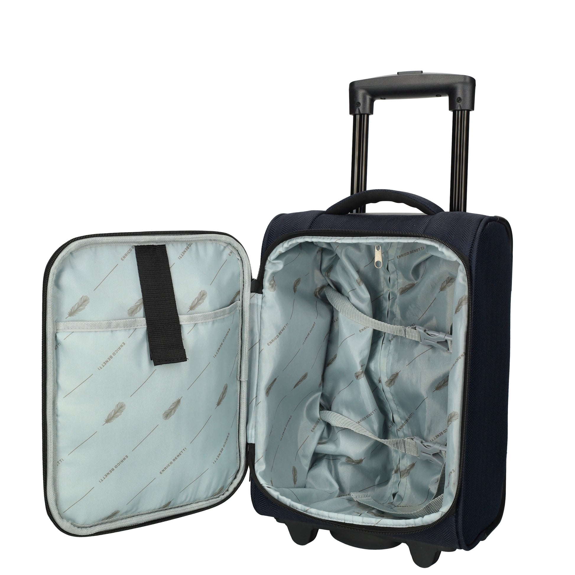 De Oakville Underseater Koffer van Enrico Benetti combineert lichtgewicht ontwerp met praktische indeling. Dankzij het duurzame nylon/polyester materiaal is deze koffer flexibel, sterk en ideaal voor wie comfortabel wil reizen zonder onnodig gewicht. De navy kleurige uitvoering geeft een nette en betrouwbare uitstraling, geschikt voor zowel zakenreizen als vakanties.