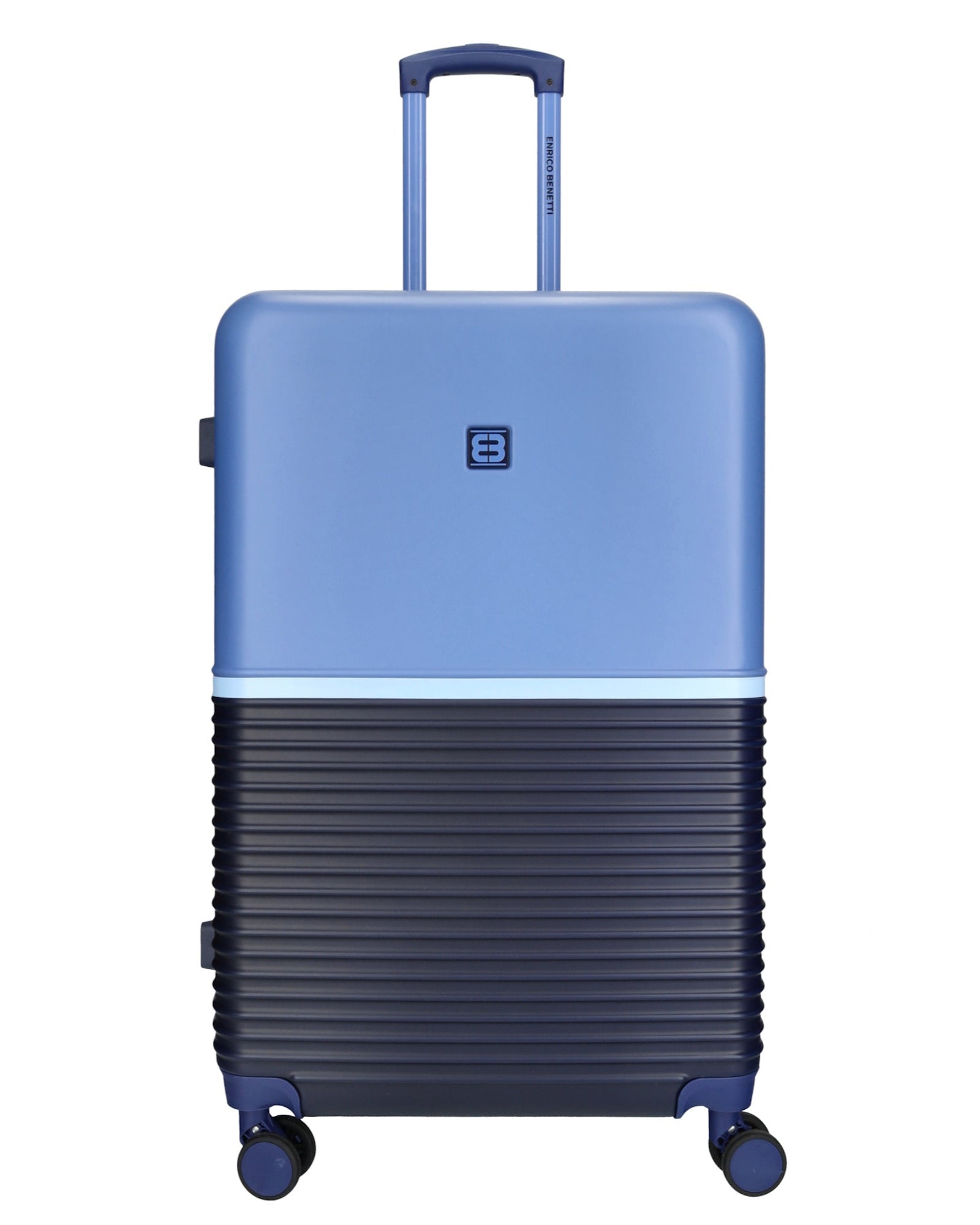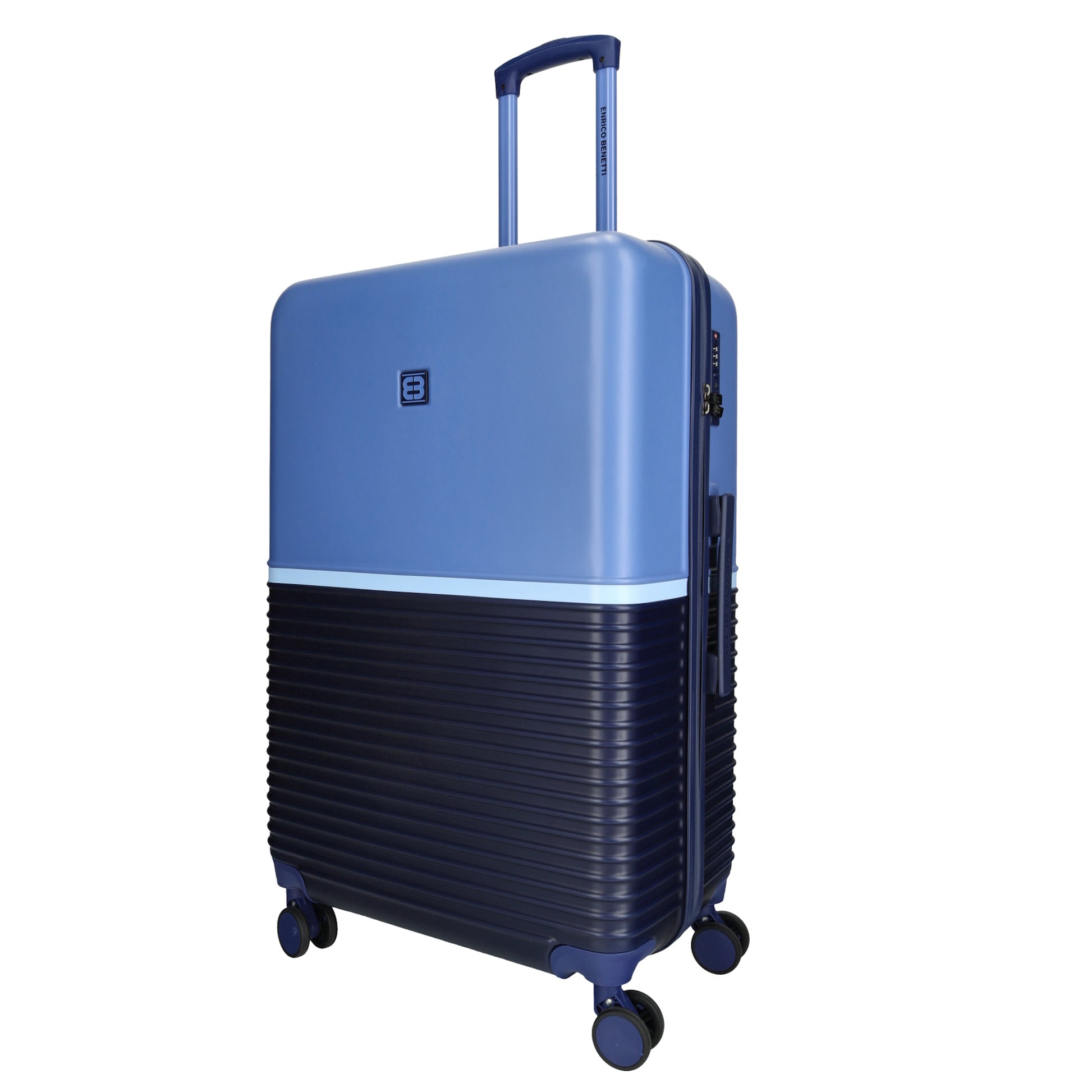 De Princetown Groot van Enrico Benetti is een stijlvolle en ruime reiskoffer met een opvallende tweekleurige afwerking in navy en jeans. Dankzij de royale inhoud van 117 liter is deze koffer perfect voor langere vakanties of verre reizen waarbij je extra veel mee wilt nemen.