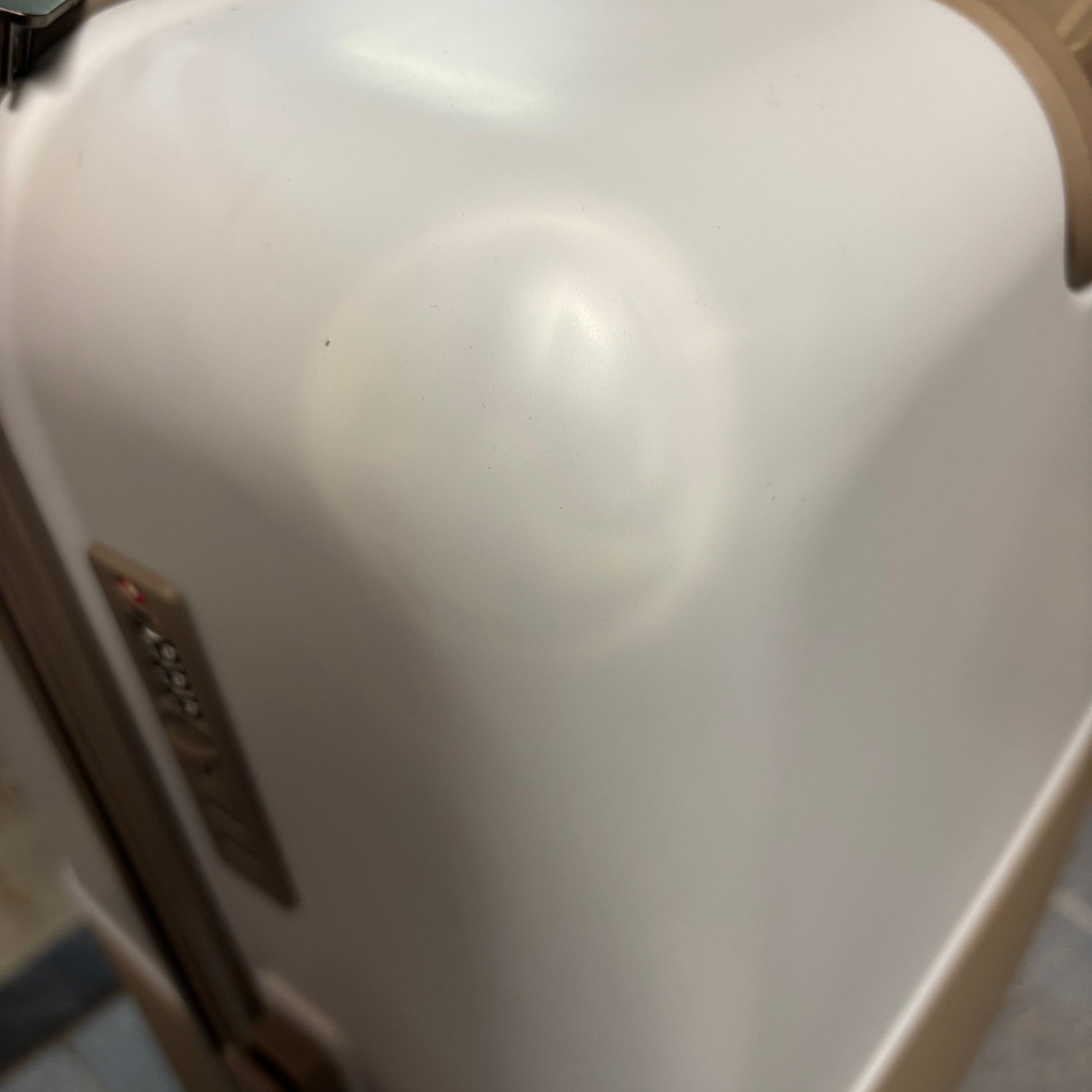 Tweede Kans: deze koffer is volledig nieuw en 100% functioneel. De reden dat hij in onze Tweede Kans-collectie valt, is een kleine optische imperfectie: Een kras op de bovenzijde aan de voorkant (foto 7), rechtsvoor donkere vegen (foto 8) en rechtsachter zit een lichte drukplek in de buitenlaag, de schaal is volledig stevig en functioneel; het gaat enkel om een optische imperfectie (foto 9). Dit heeft geen invloed op het gebruik of de stevigheid.