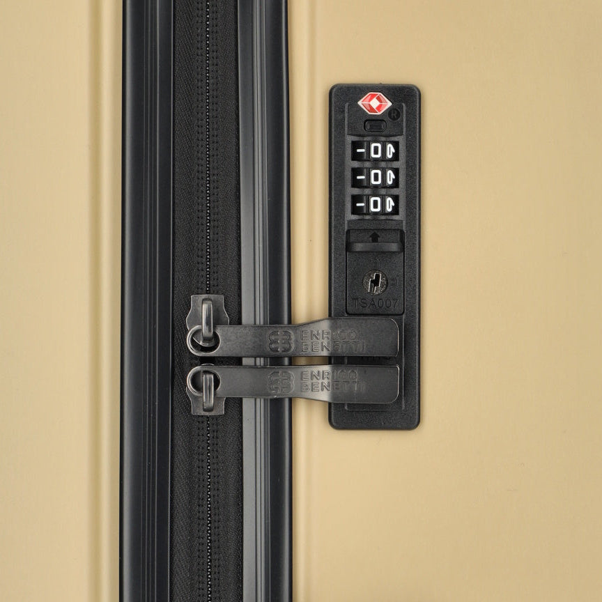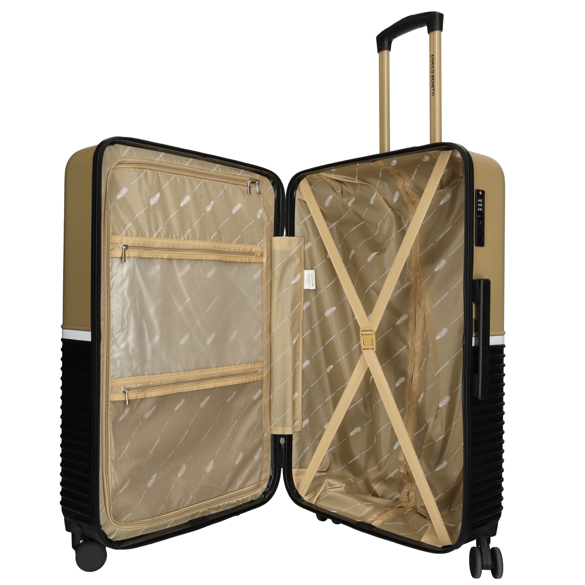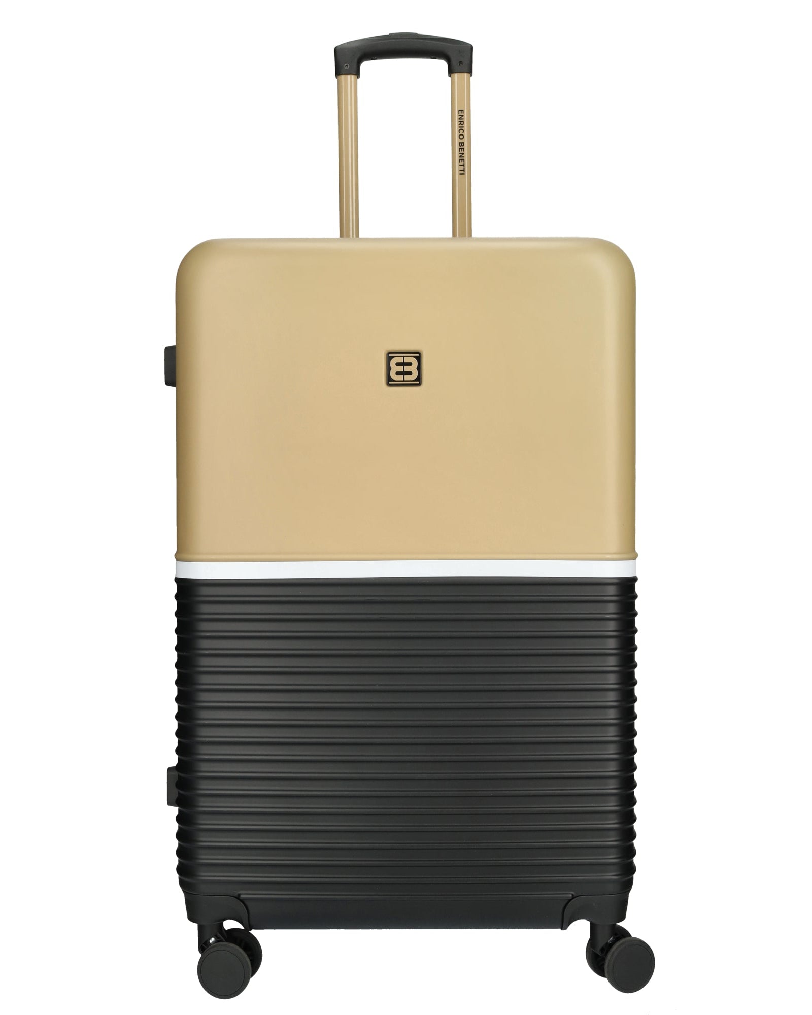 De Tweede Kans Princetown Groot van Enrico Benetti is een stijlvolle en ruime reiskoffer met een opvallende tweekleurige afwerking in zwart en camel. Dankzij de royale inhoud van 117 liter is deze koffer perfect voor langere vakanties of verre reizen waarbij je extra veel mee wilt nemen.